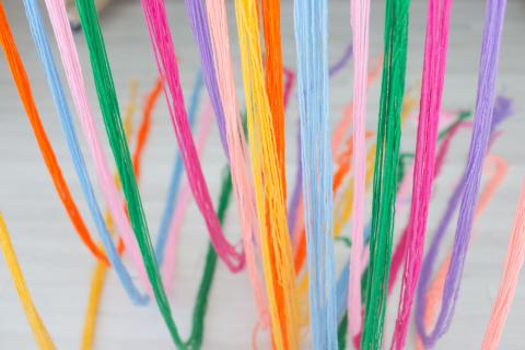 The same basic principles we used in macrame can be seen here in the creation of this yarn banner.
