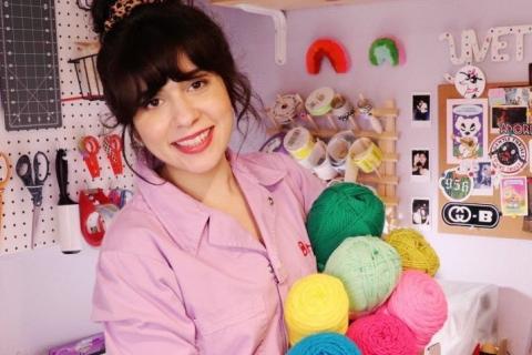 Birdie Alaniz, aka @bobcatandbirdie, is a fiber artist who specializes in the art of latch hook, specifically creating latch hook patterns and kits. She sells BYOY (bring your own yarn) latch hook kits on Etsy that allow you to customize your own latch hook design using the colors of your choice and the yarn in your stash. Along with latch hook, she also dabbles in embroidery and digital art and we think her designs are a fun, colorful mix of 90's nostalgia and RGV (Rio Grande...