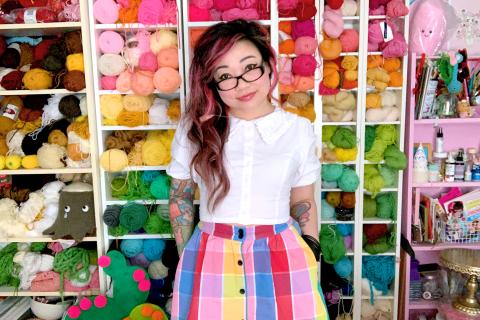 CYC presented each of the Sweet Tooth Hotel Intangible artists with the opportunity to write their own guest post for the CYC blog. We told them they could write a post over any topic related to their install or CYC AIR experience. The following blog post is written by Niki Dionne, aka @actualfootageofme! Niki is a fiber artist, illustrator, and also the Director of Communications and Social Media for the Craft Yarn Council!