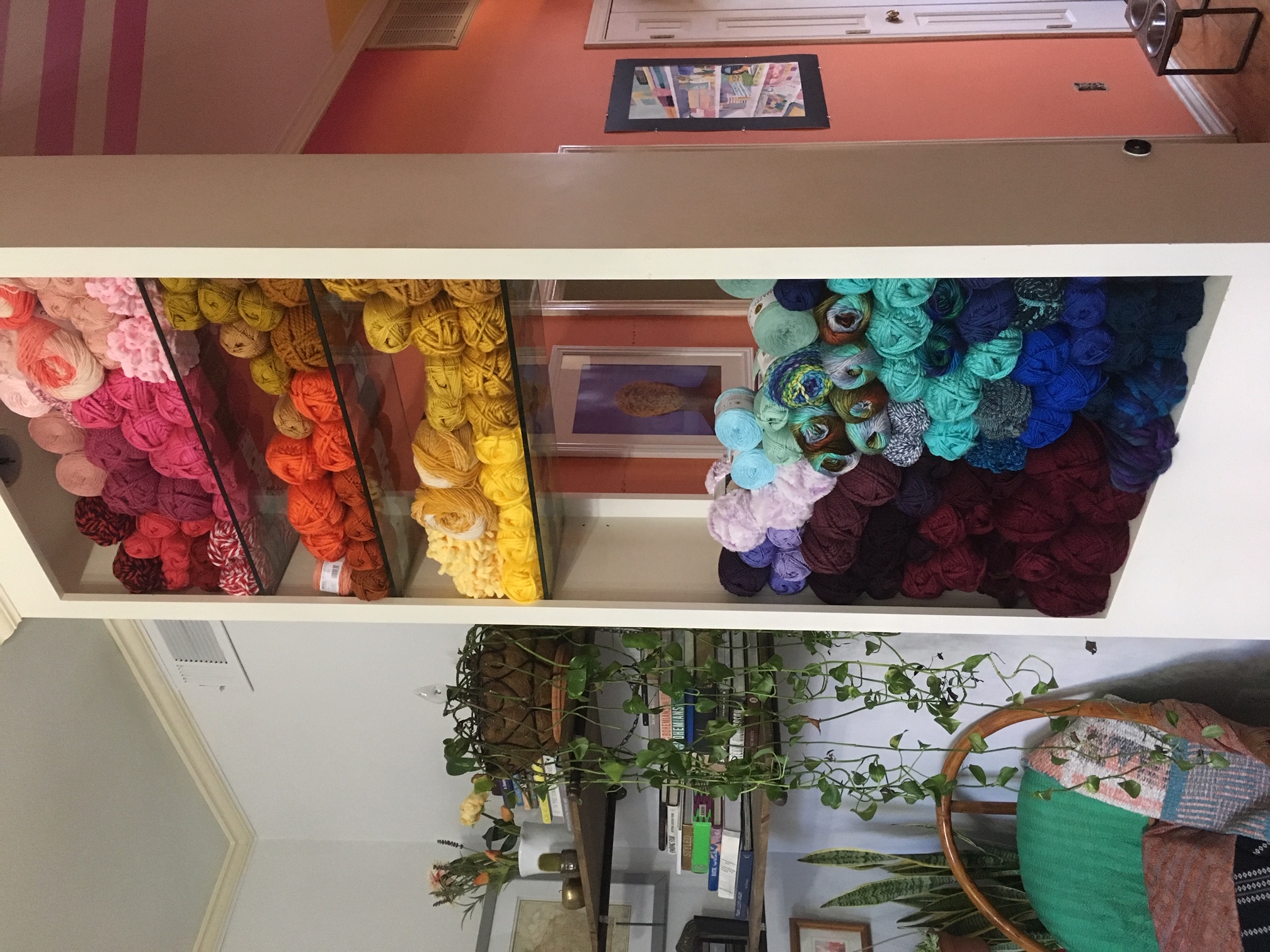 Since each of the artists used large quantities of yarn for their installs, we wanted to do a special series of Happy Place blog posts to dive into how each of them stored and organized their yarn. Read on for our CYC AIR Happy Place with Molly Sydnor, aka @mollymargaretdesigner! Molly is a multidisciplinary artist, graduate of the Maryland Institute of Art's Fiber program, and a queer biracial black woman!