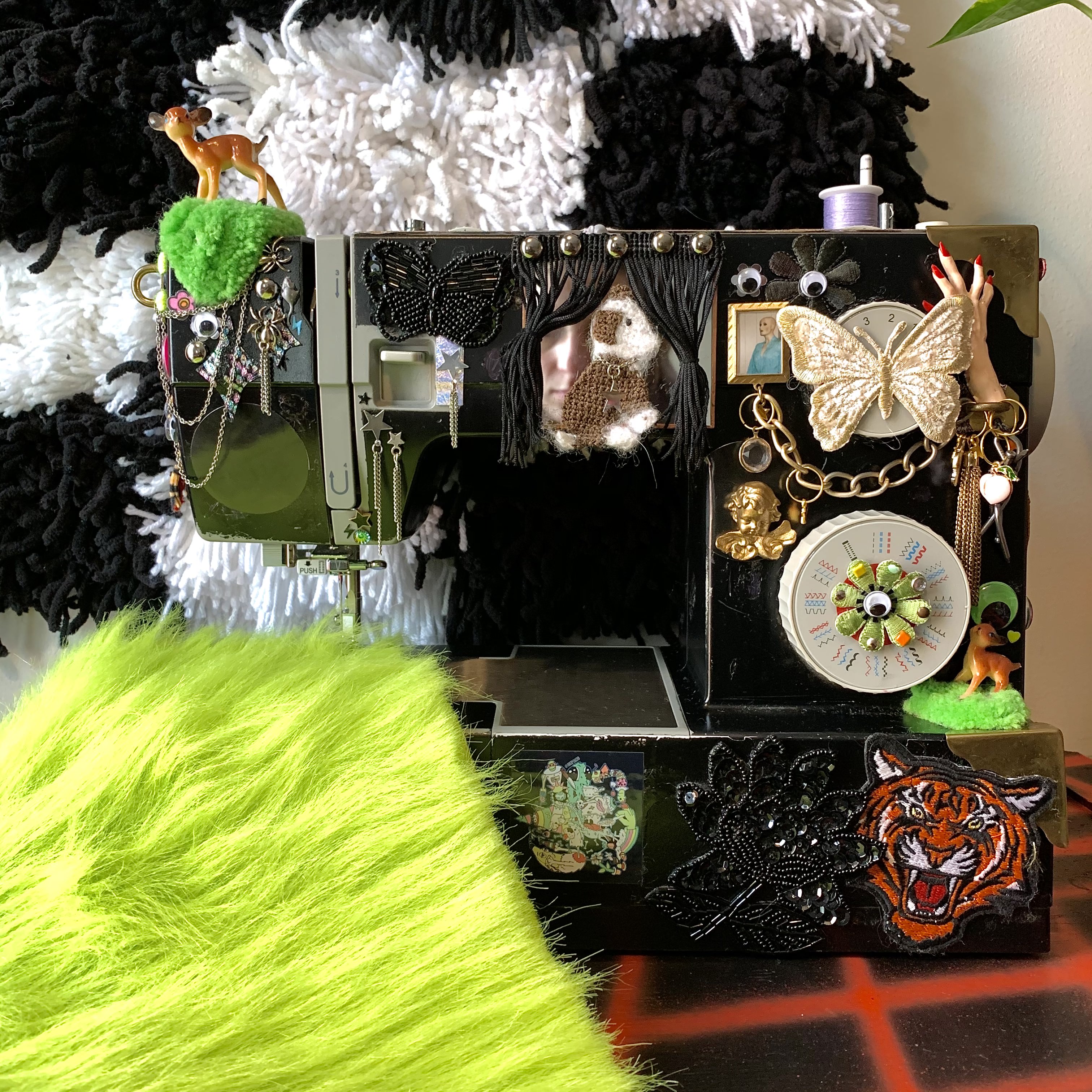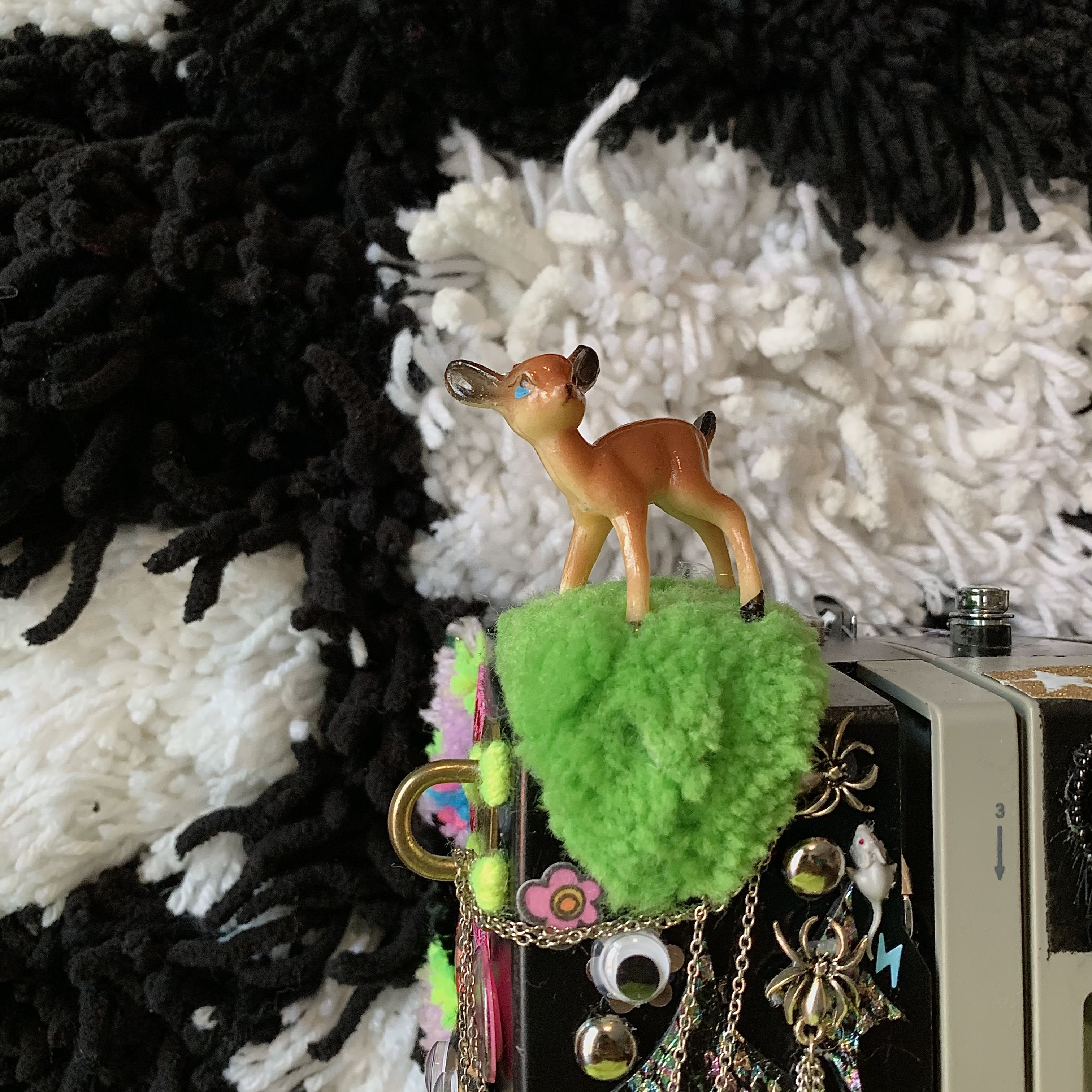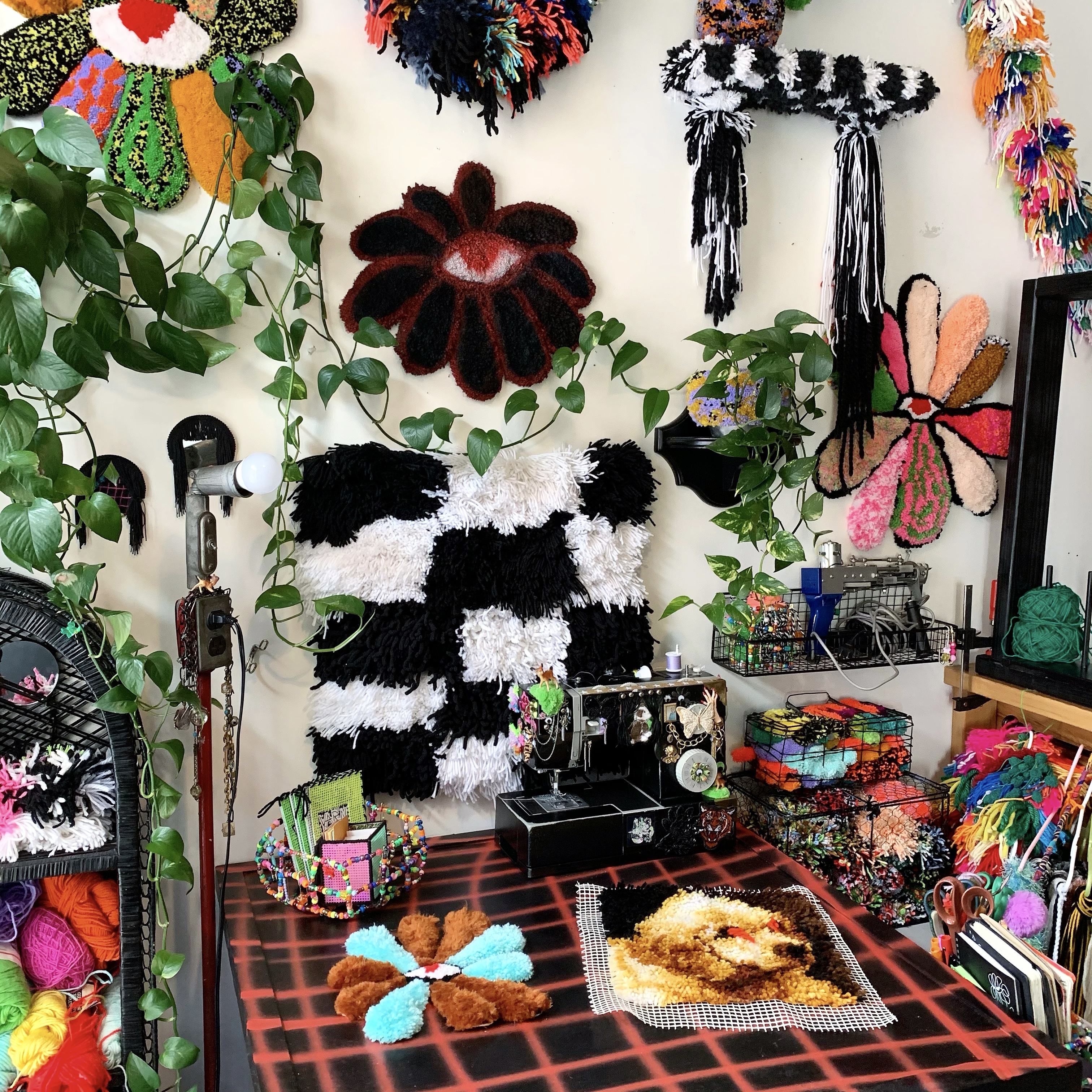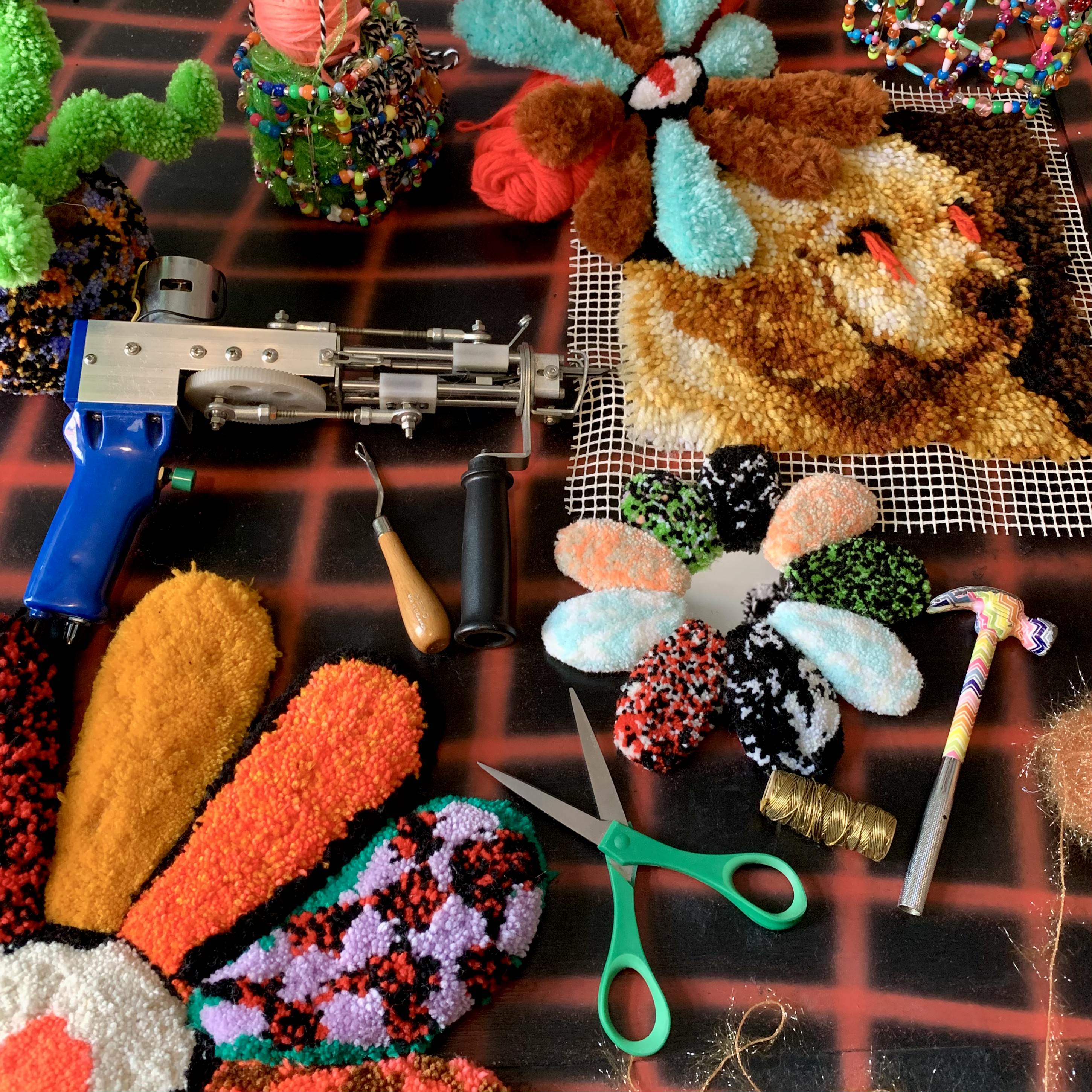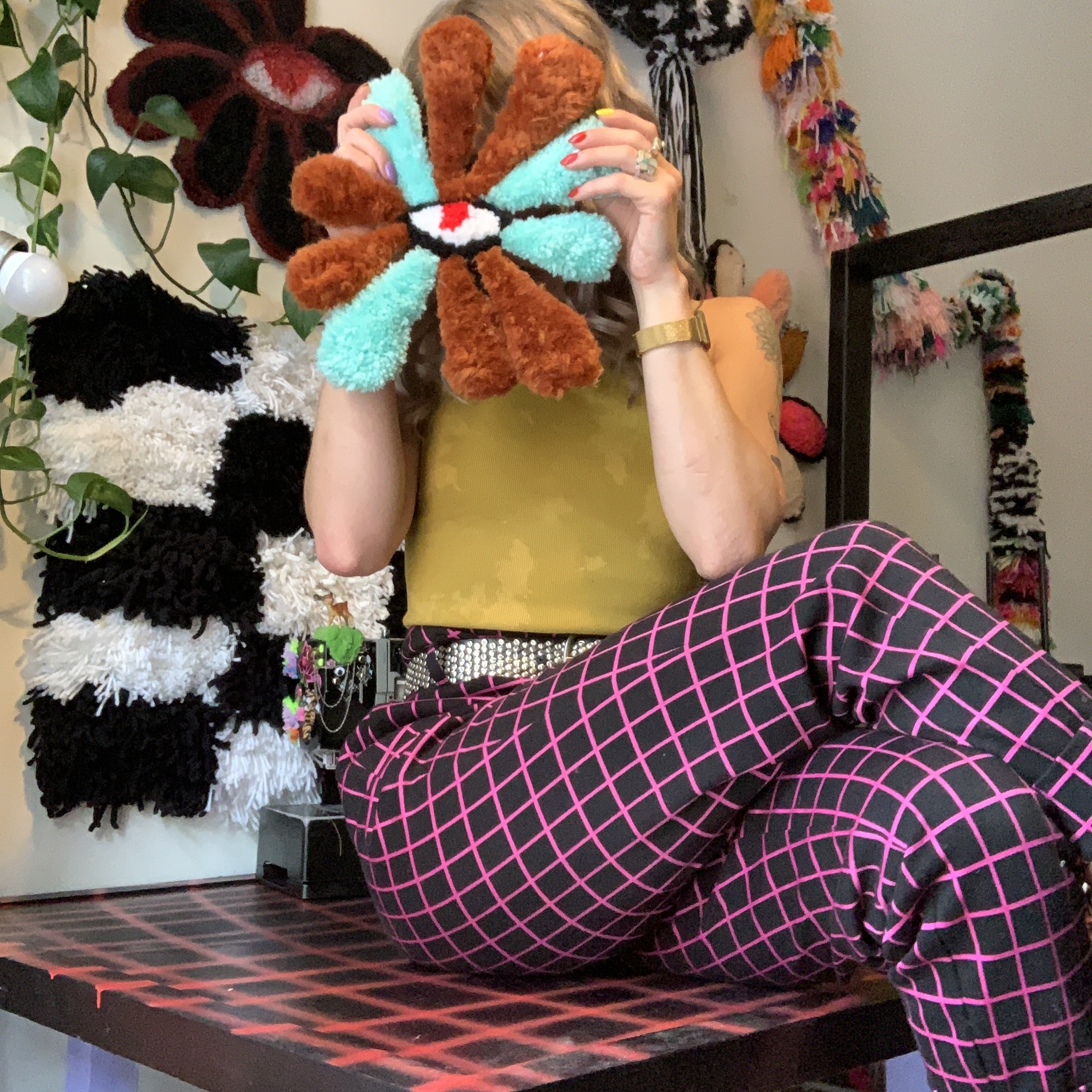 Andrea Fischer (she/her) is a midwestern yarn lady living in Denver, CO. She makes use of her BFA in photography from UWEC to take portraits of her yarn sculptures. By utilizing her experience with rug making and fine art, she transforms the existing shapes of household objects with her self taught tufting techniques. Andrea’s color pallet is constantly evolving alongside the use of recycled materials. She is constantly challenging herself to cover her house in yarn.