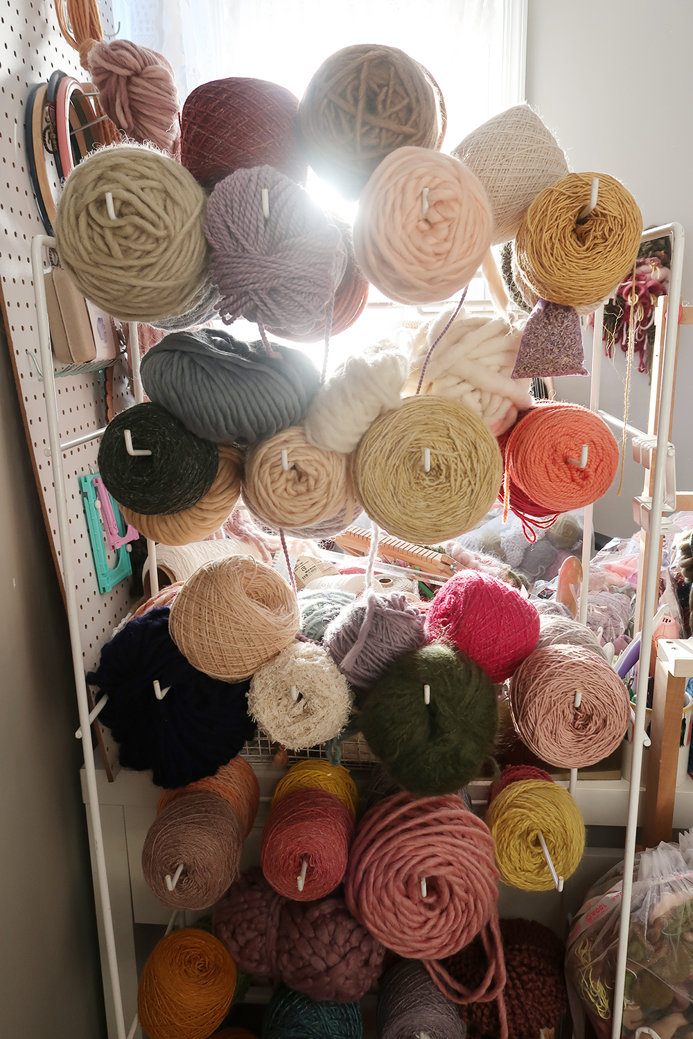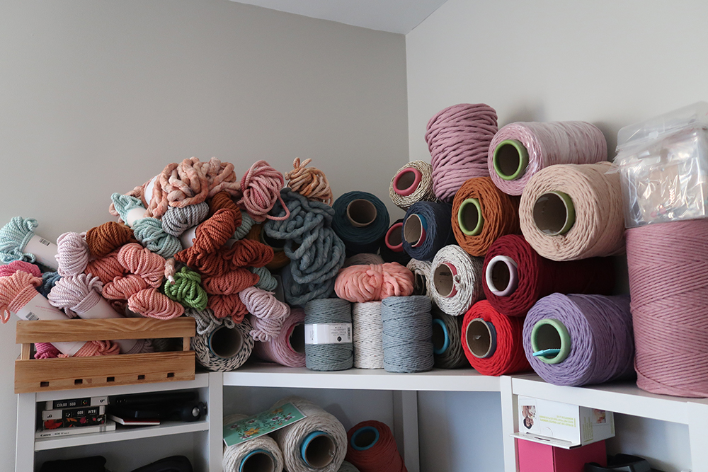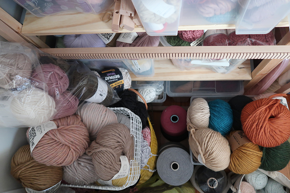 Yes. I'm lucky enough to be able to dedicate a whole room for my work. I like having the access because as a weaver I use so many different kinds of yarn all in one piece. Plus, as chaotic at the collection is, it makes me happy to look at.