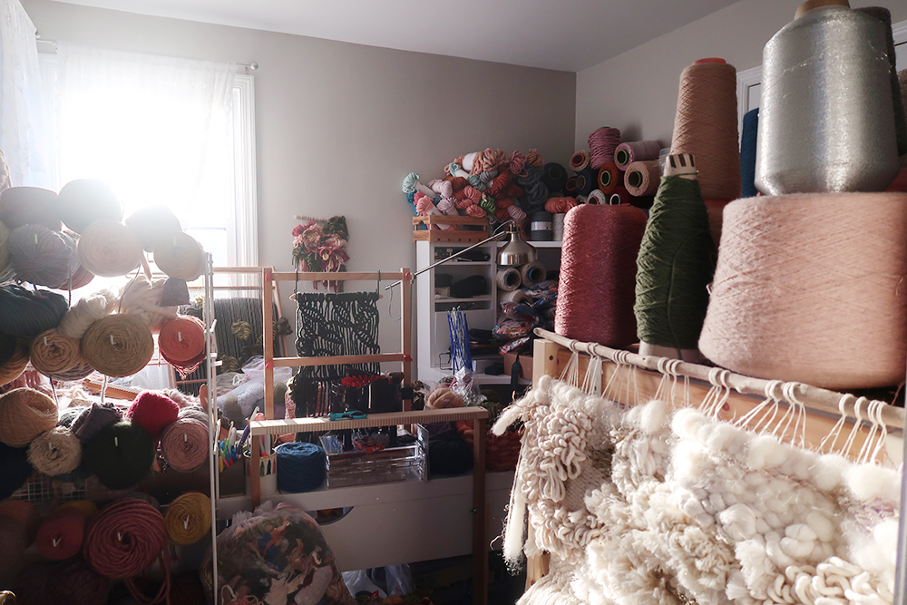 It stays in my room, because otherwise my partner would put it right back in the room. Most of my current pieces sit on my weaving desk. If I have an unfinished piece on a loom that I want to revisit at a later date, I just try to find a space where it can fit.