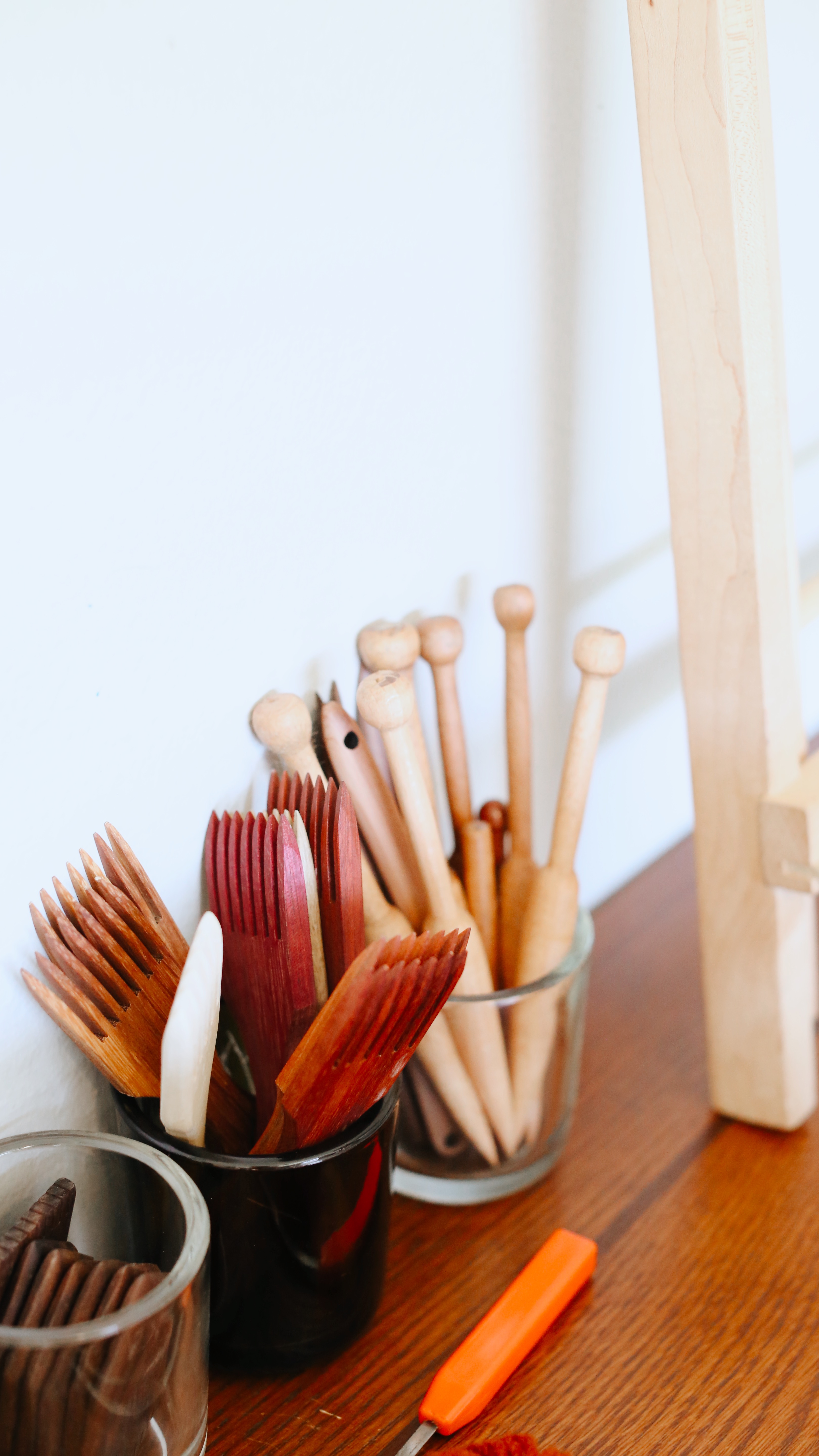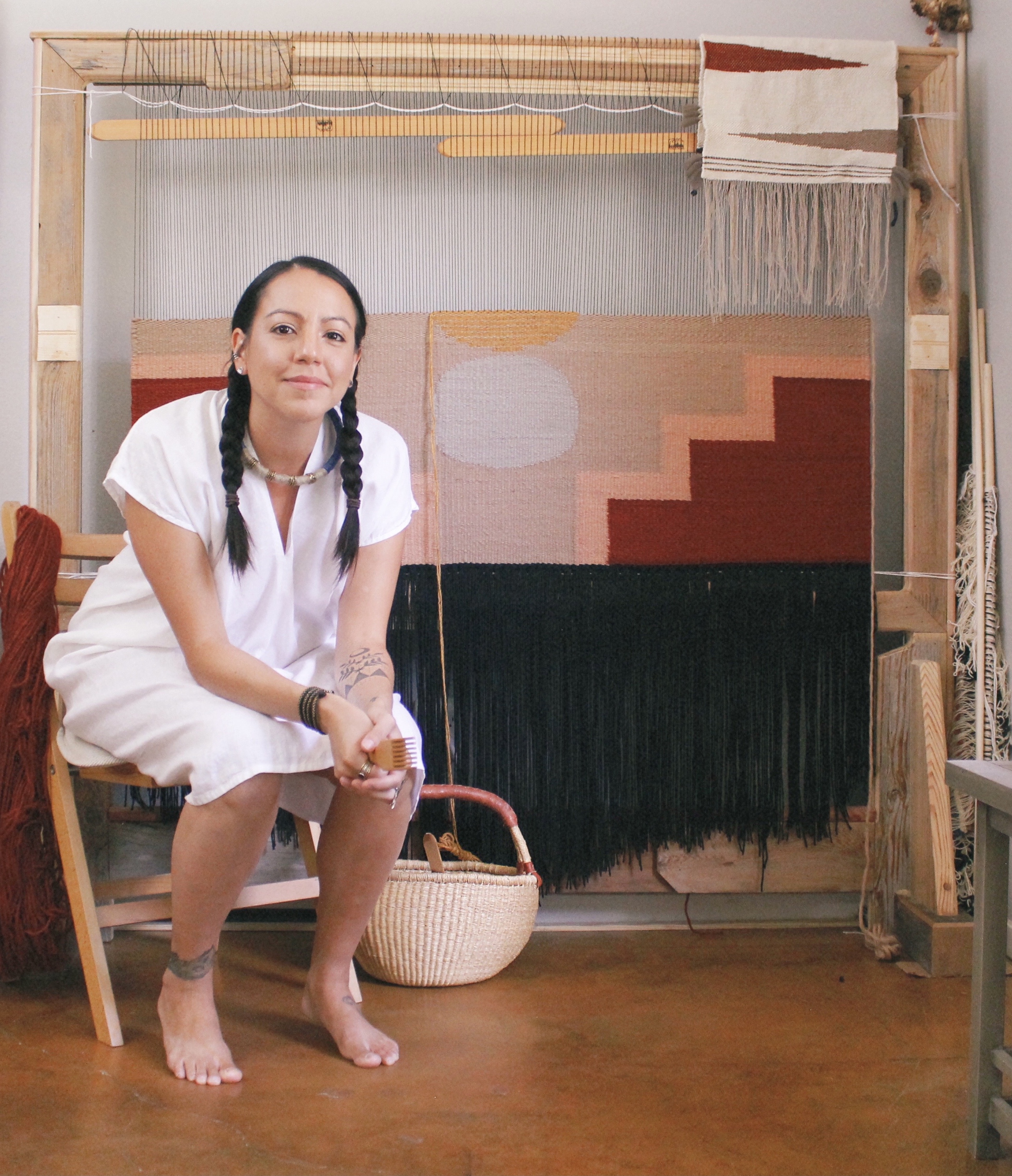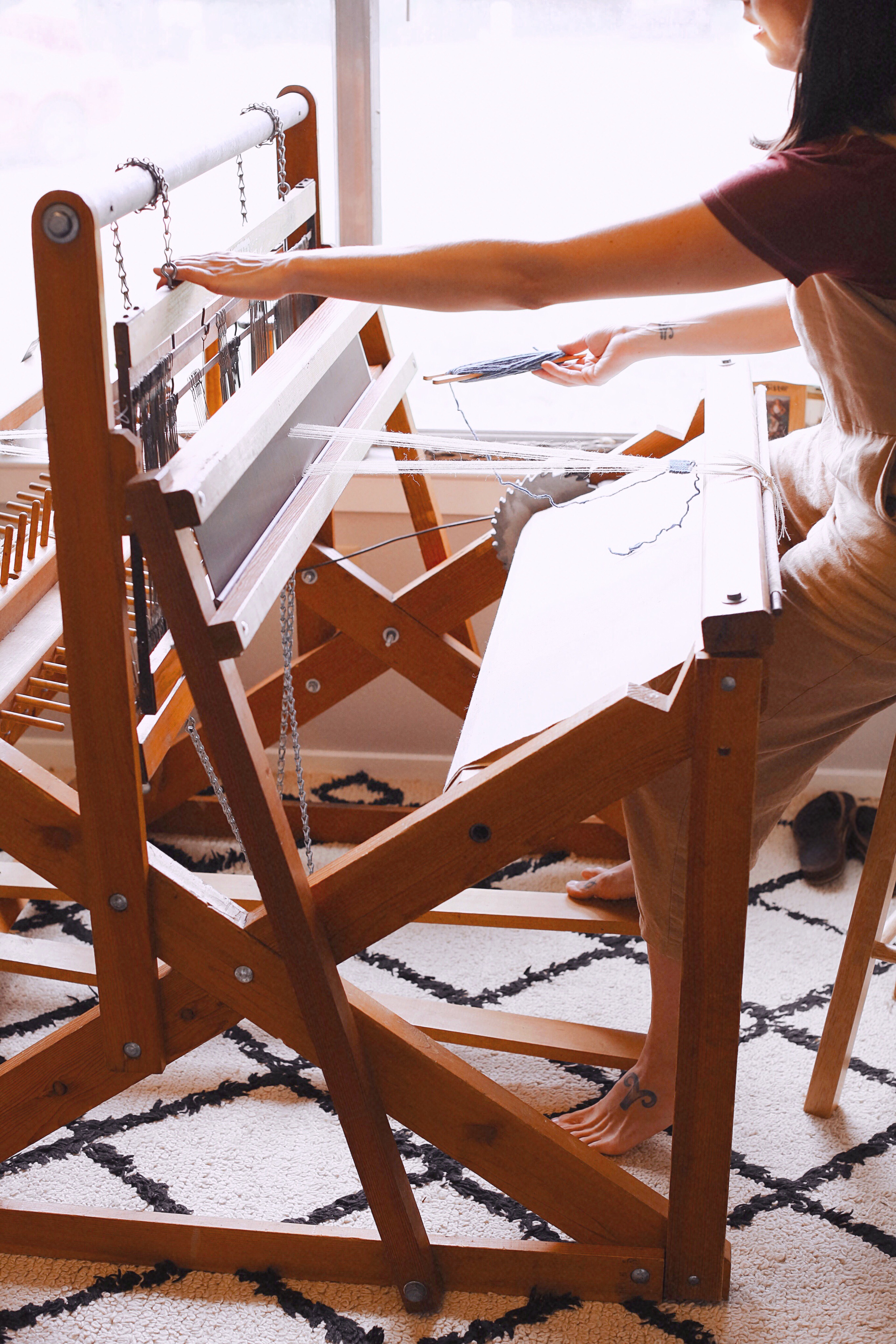 I like to work with natural fibers, specifically Navajo Churro Wool, and I try to purchase that from small independant farms and shops. I love supporting small yarn businesses and they usually carry unique fibers you can't find just anywhere. My floor loom is rather old and was gifted to me by a lady who was downsizing her home. Both of my tapestry looms are handmade by a local carpenter. Most of my tools are also purchased from local artisans.