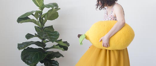 Make a lemon pillow of your own and make one to brighten someone else's day. Designed by crochet artist extraordinaire Twinkie Chan, it's cuddly and squeezable, and like the lemon stress ball Twinkie designed several years ago, a great stress reliever.