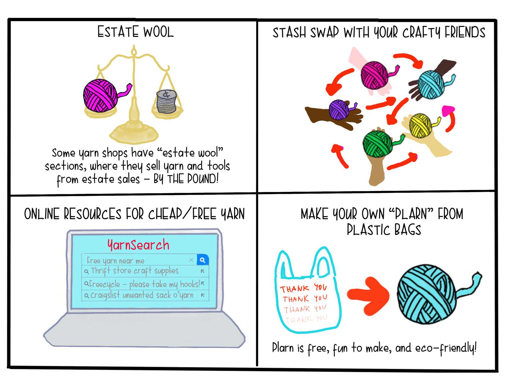 Crafting is one of the most helpful techniques I know for coping with stress. But sometimes, the cost of supplies can actually add to my anxiety! It can be hard to decide how much is ok to spend on a hobby. Luckily, there are lots of ways to avoid splurging too much on yarn, knitting needles, and crochet hooks.